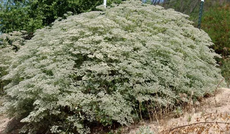 Its airy white blossoms form intricate, lacy clusters that echo the very shape of the wheel’s spokes. Like the saint it honors, the plant is both graceful and strong, able to thrive in challenging conditions. Its presence throughout the garden ties each virtue together, symbolizing unity in holiness and the beauty that blooms from a life fully given to God.